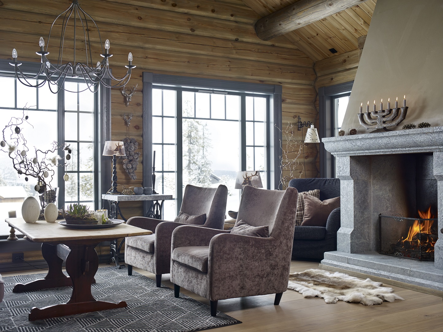 Stue inneholder: Sofa, peis, egen lesealkove. Hemsen har TV og en liten sofa. Internett. Vaskemaskin og tørketrommel. Sauna med egene utgang ut. Solterasse.