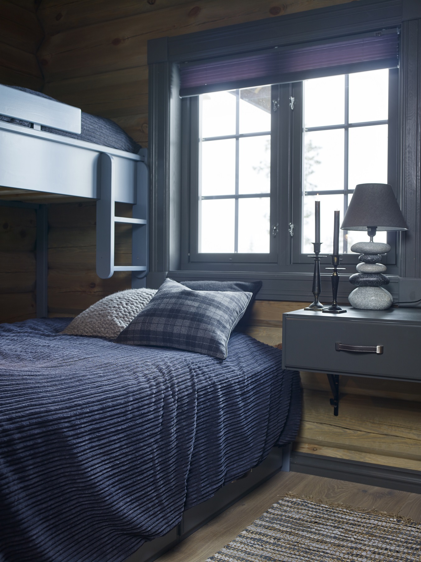 Soverom 1: 1 dobbeltseng. Soverom 2: 1 dobbeltseng. Soverom 3: 1 familiekøye (dobbelt underkøye 150cm bred/enkel overkøye. Soverom 4 (hems): 5 enkeltsenger på hemsen.