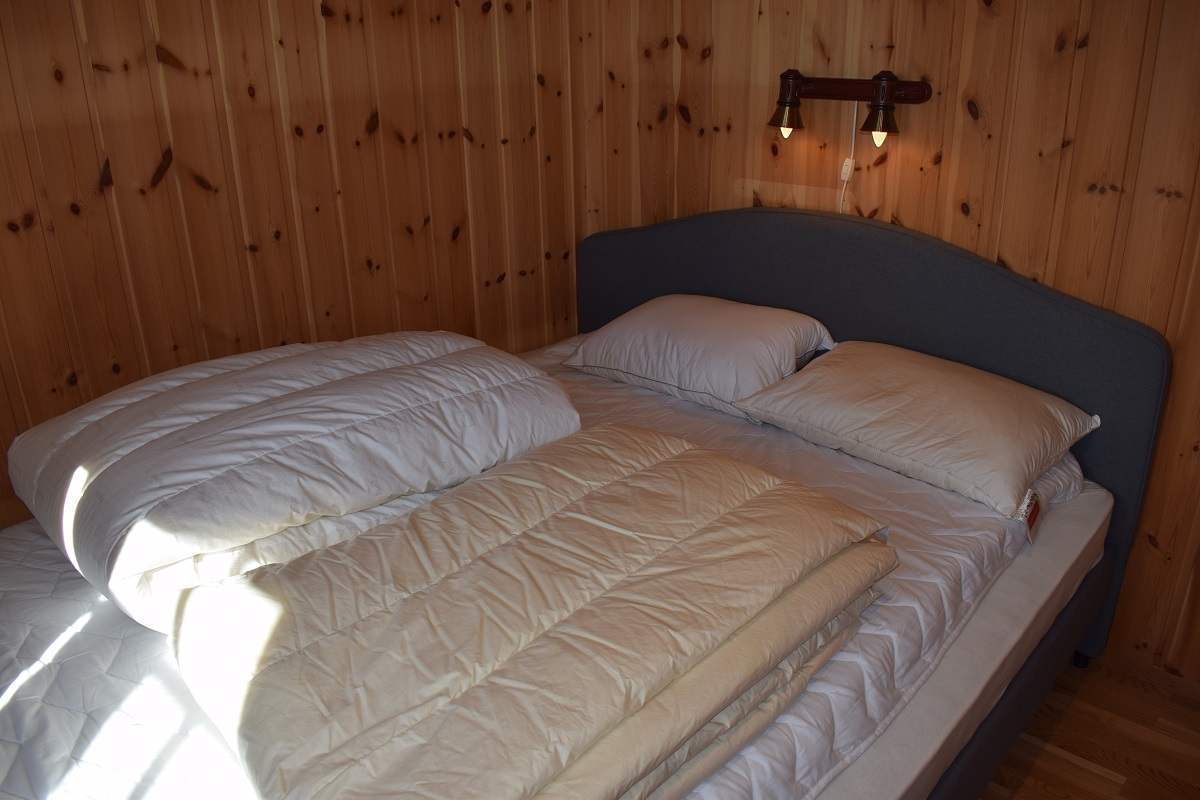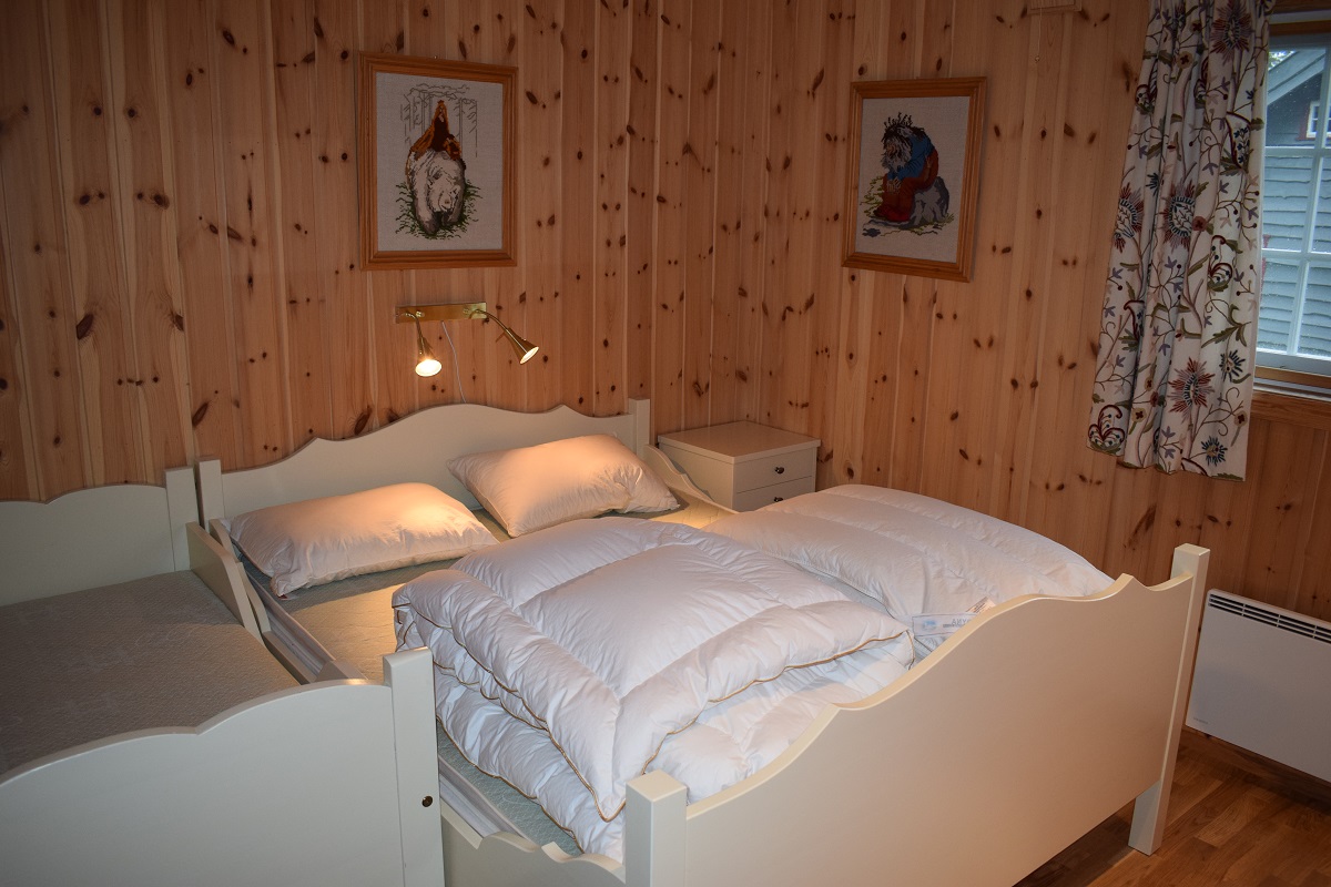 Soverom 1: 1 dobbeltseng. Soverom 2: 1 dobbeltseng. Soverom 3: 1 familiekøye (dobbelt underkøye 120 cm bred/enkel overkøye). Soverom 4: 1 dobbeltseng (140 cm bred).