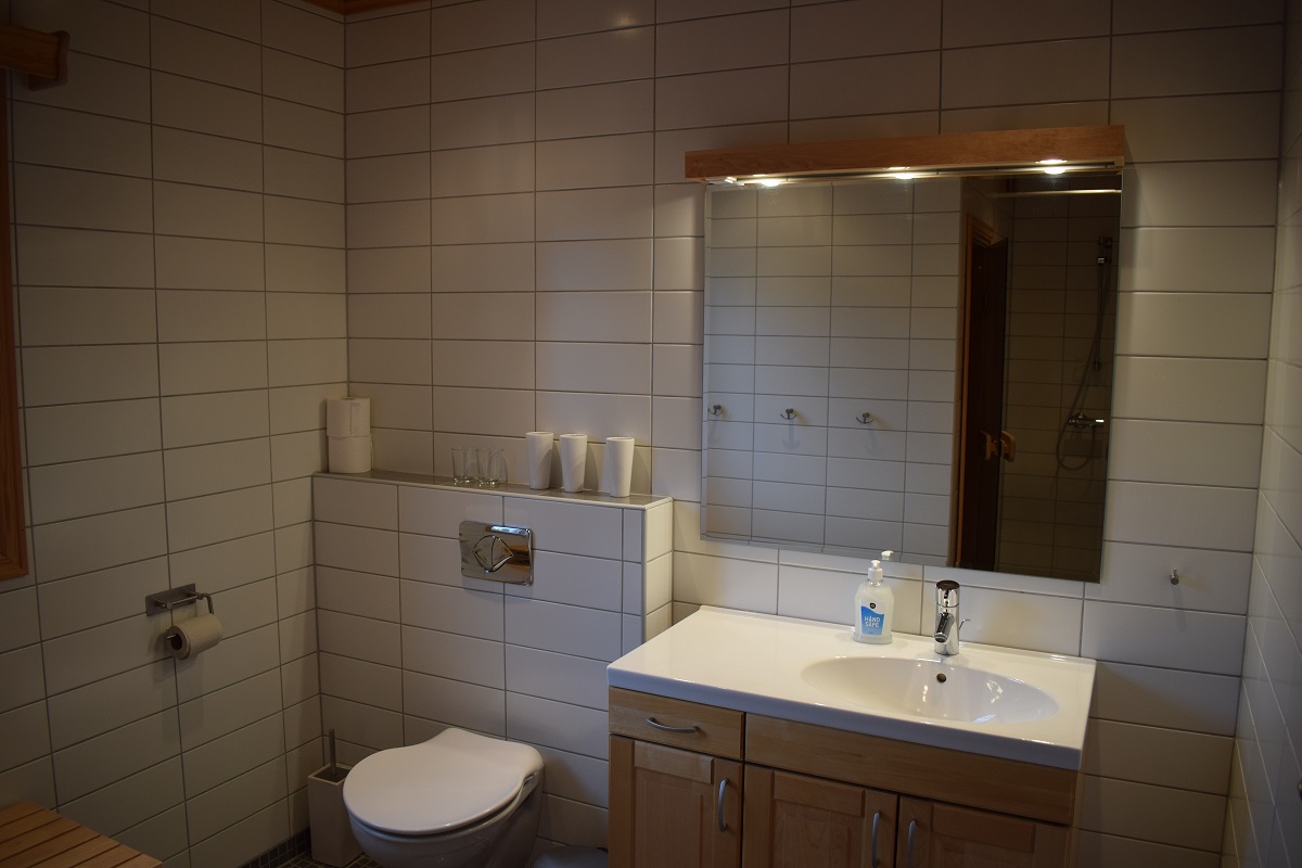 Bad 1: Dusj og toalett. Sauna. 1 ekstra toalett. Vaskemaskin.