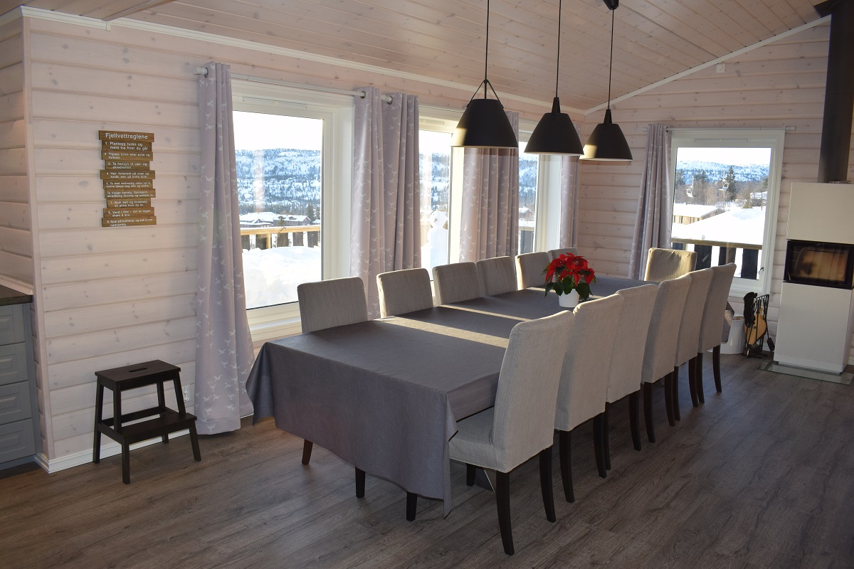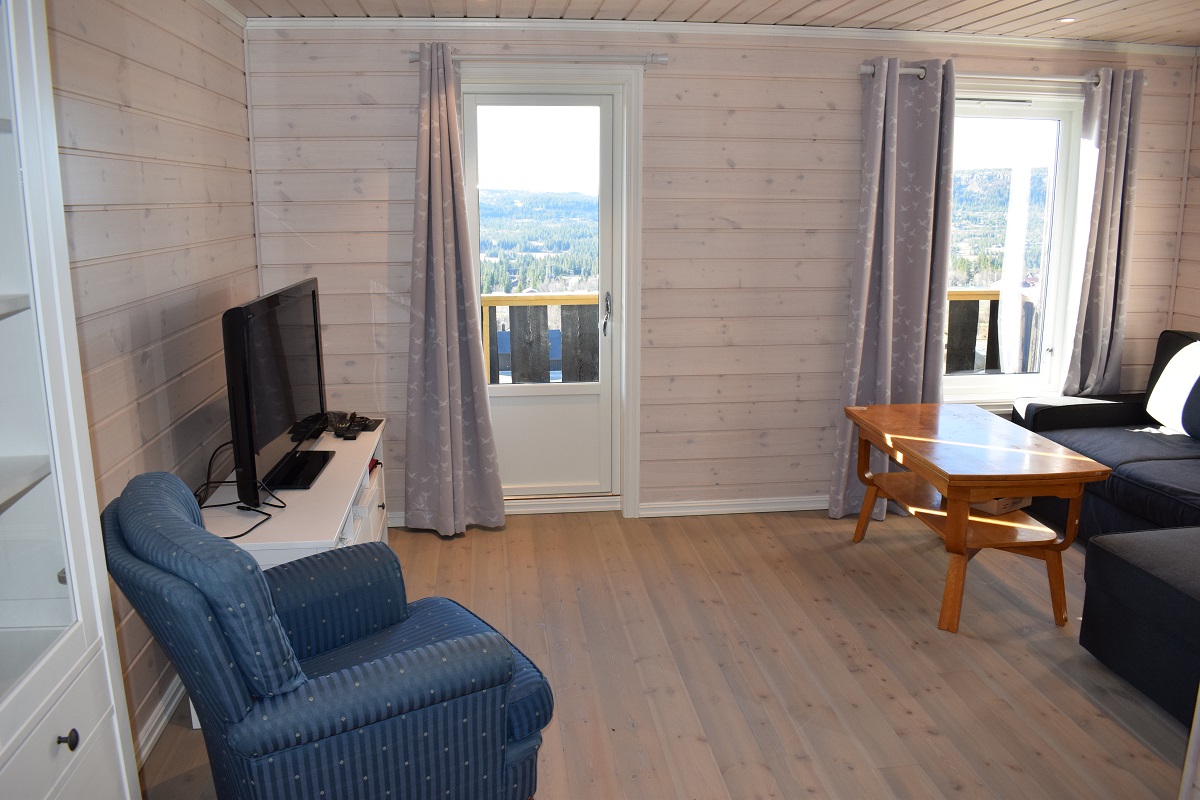 Hytte med 2 fullverdige etasjer. Egen stue med sovesofa og TV oppe, samt balkong. Stor stue nede inneholder: Sofa, peis, TV, internett og stort spisebord med plass til 14 personer. Stor solvendt terrasse med fin oversikt over løyper og bakker. Egen ladestasjon for El-bil på hytta med kapasitet på 11 kw.