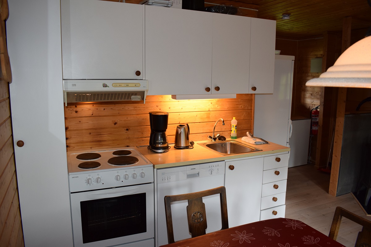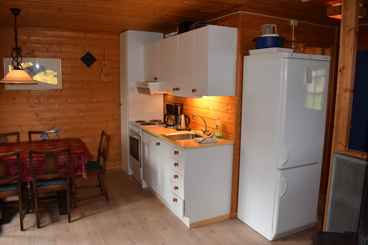 KJØKKEN Kjøkken utstyrt for selvhushold: Stor kjøl/frys, ett ekstra lite kjøleskap, oppvaskmaskin, komfyr med 4 plater, kaffetrakter og vannkoker.
