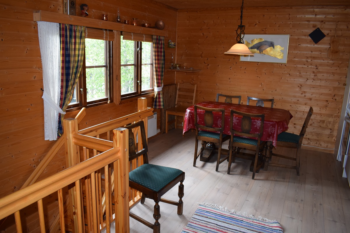 ANNET Leilighet over to plan, med soverommene nede og stue og kjøkken i andre etasje. Stue inneholder: Sofa, TV, peisovn, internett. Spisebord med plass til 8 personer. 2 skotørkere i gangen nede.