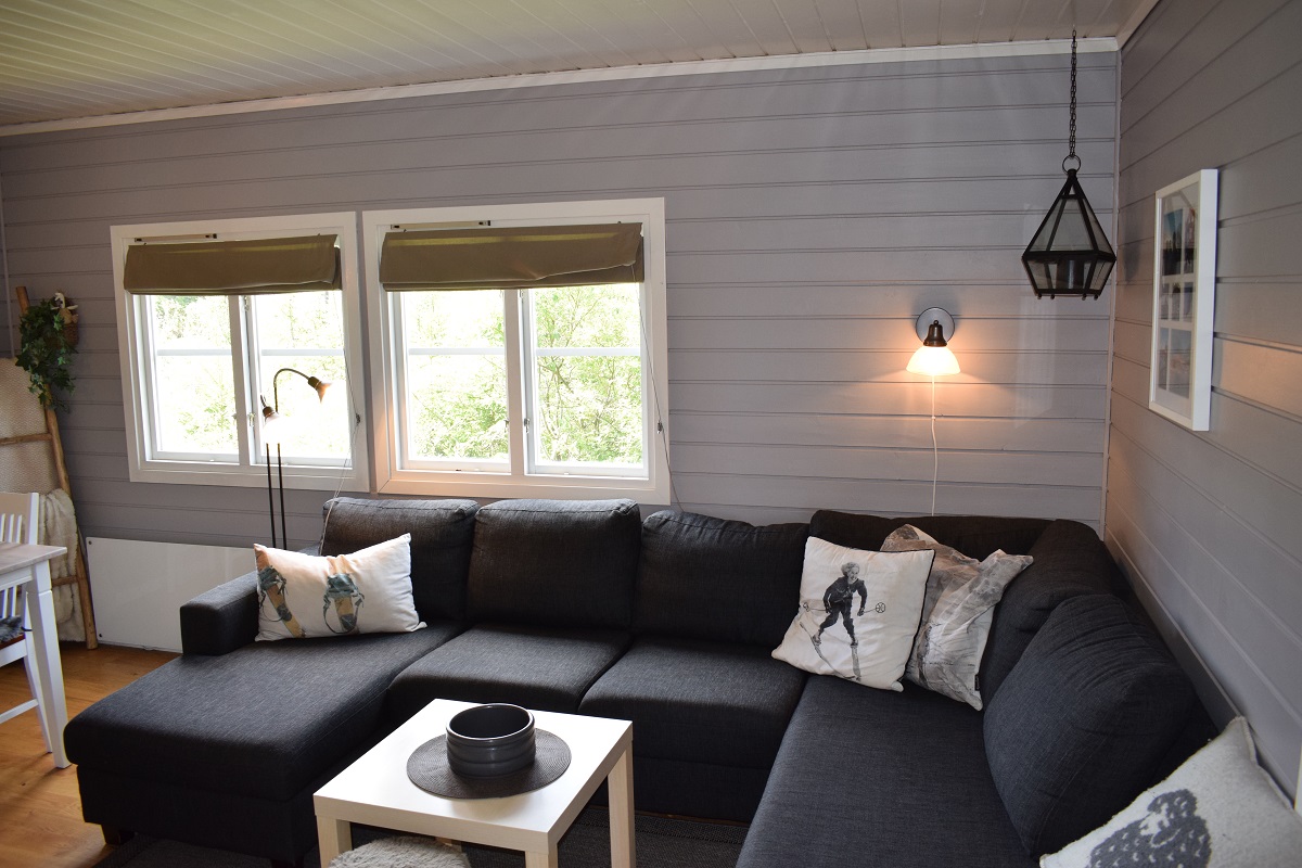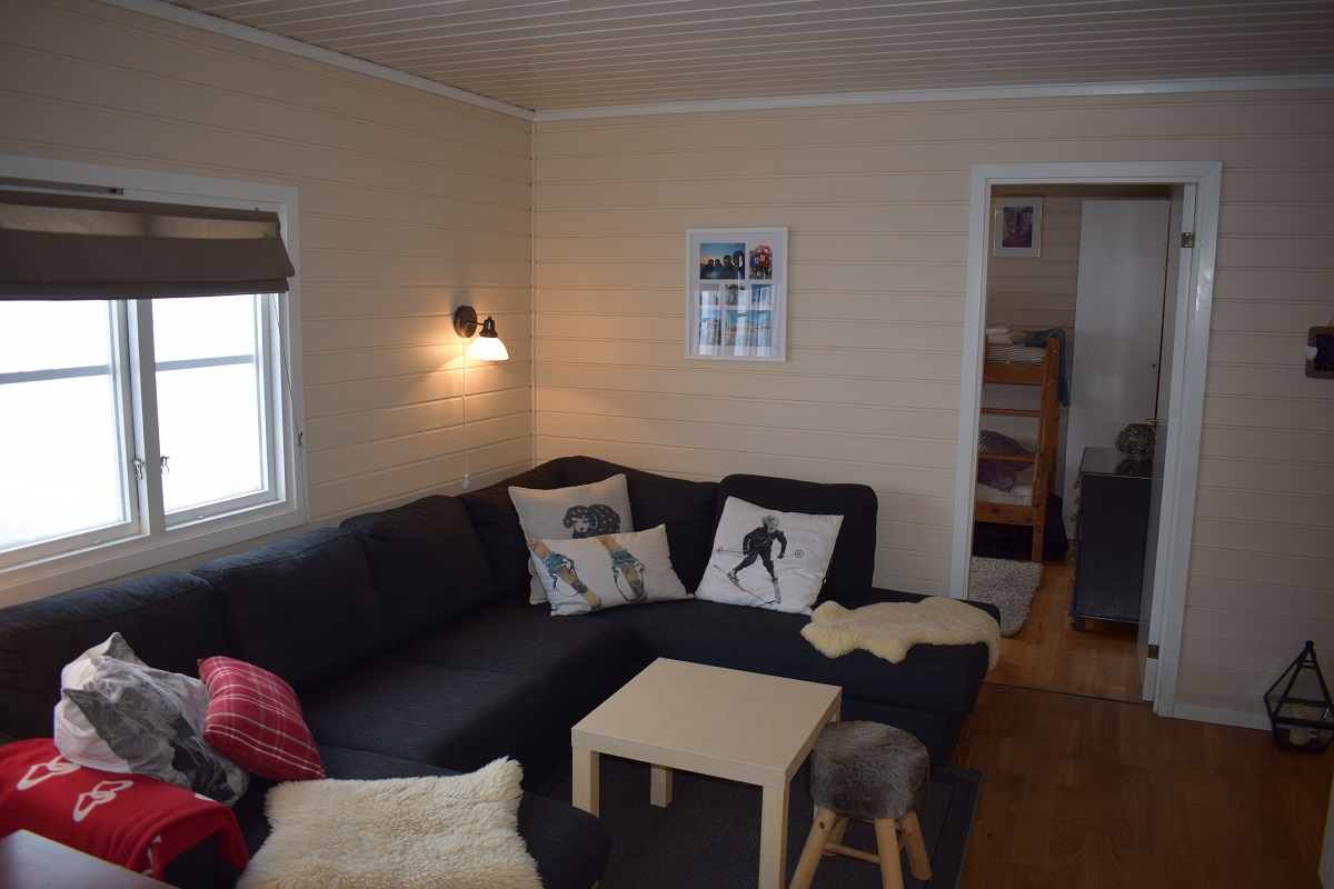 ANNET Stue og kjøkken i åpen løsning. Stue inneholder: Sofa, TV og peisovn, spisebord, mikrobølgeovn, internett.
