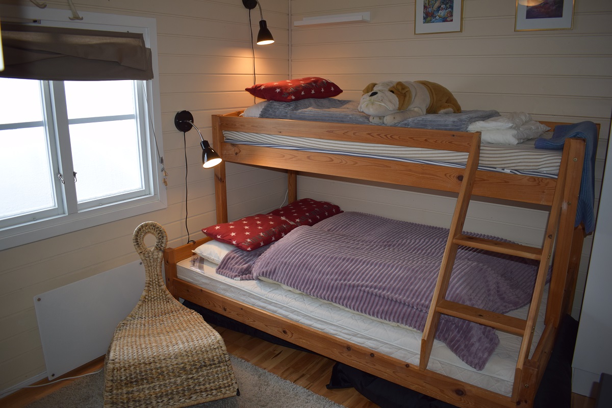 SOVEROM Soverom 1: 1 dobbeltseng. Soverom 2: 1 familiekøye (dobbel underkøye 1.20 cm bred/enkel overkøye).