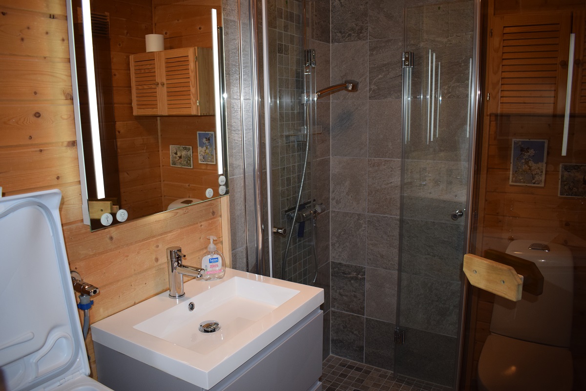 Bad 1: Dusj og toalett. Sauna. Vaskemaskin.