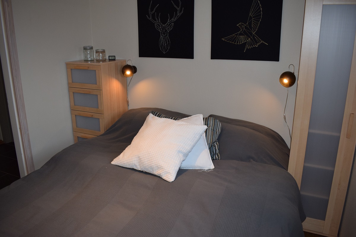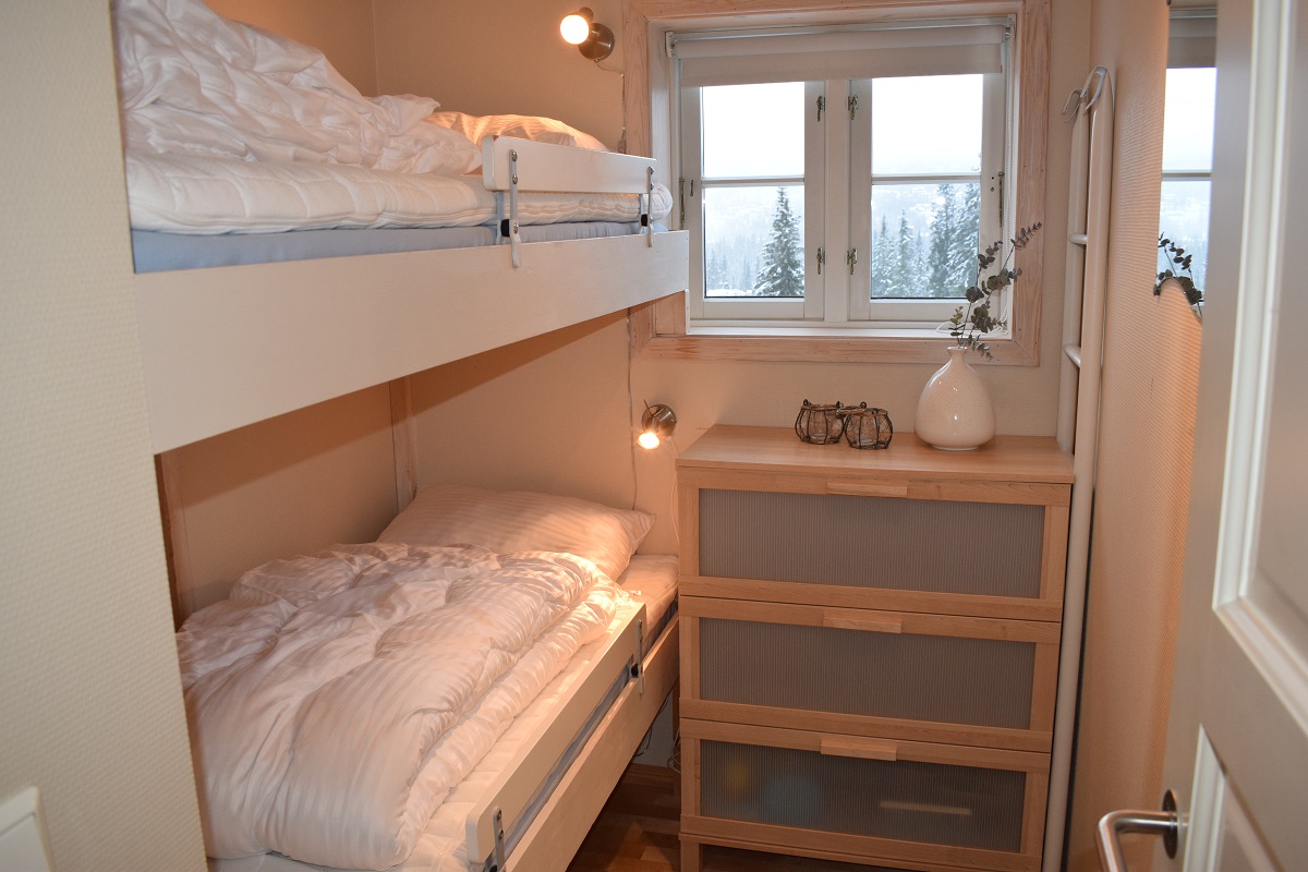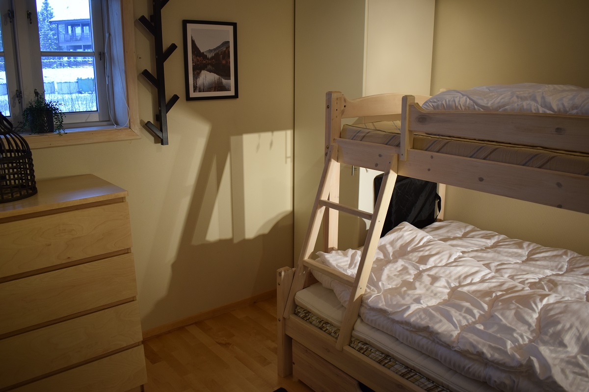 Soverom 1: 1 dobbeltseng (160cm bred). Soverom 2: 1 familiekøye (dobbel underkøye 1.20 cm bred/enkel overkøye). Soverom 3: 1 køyeseng.