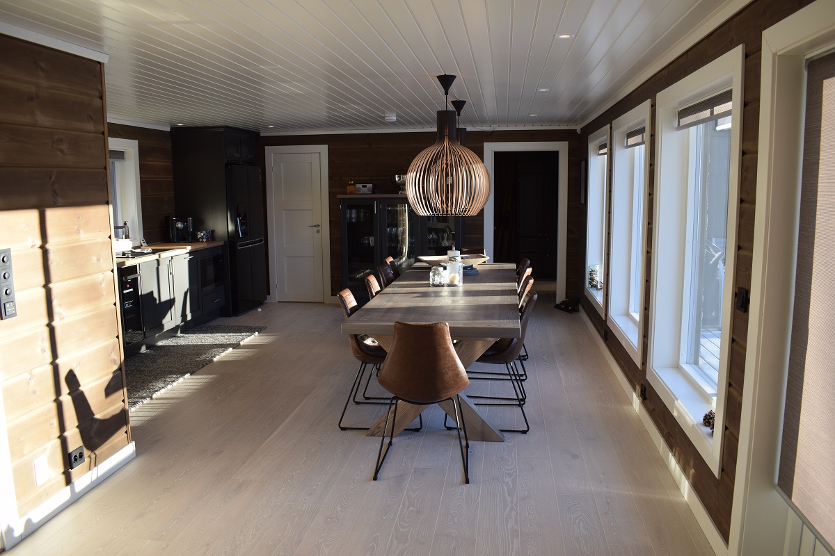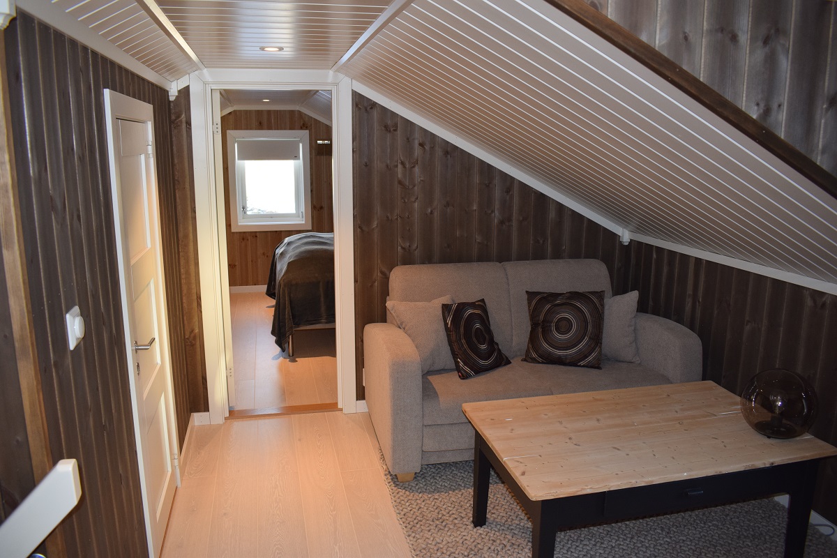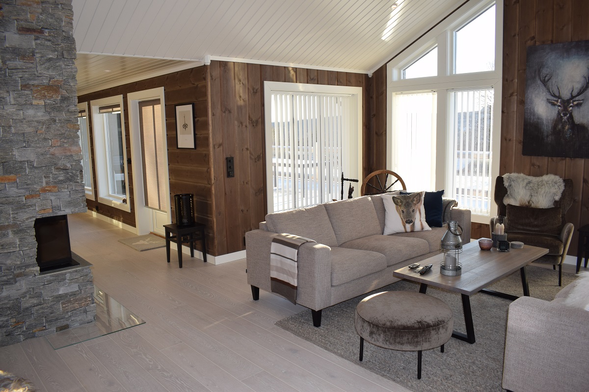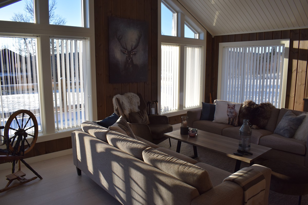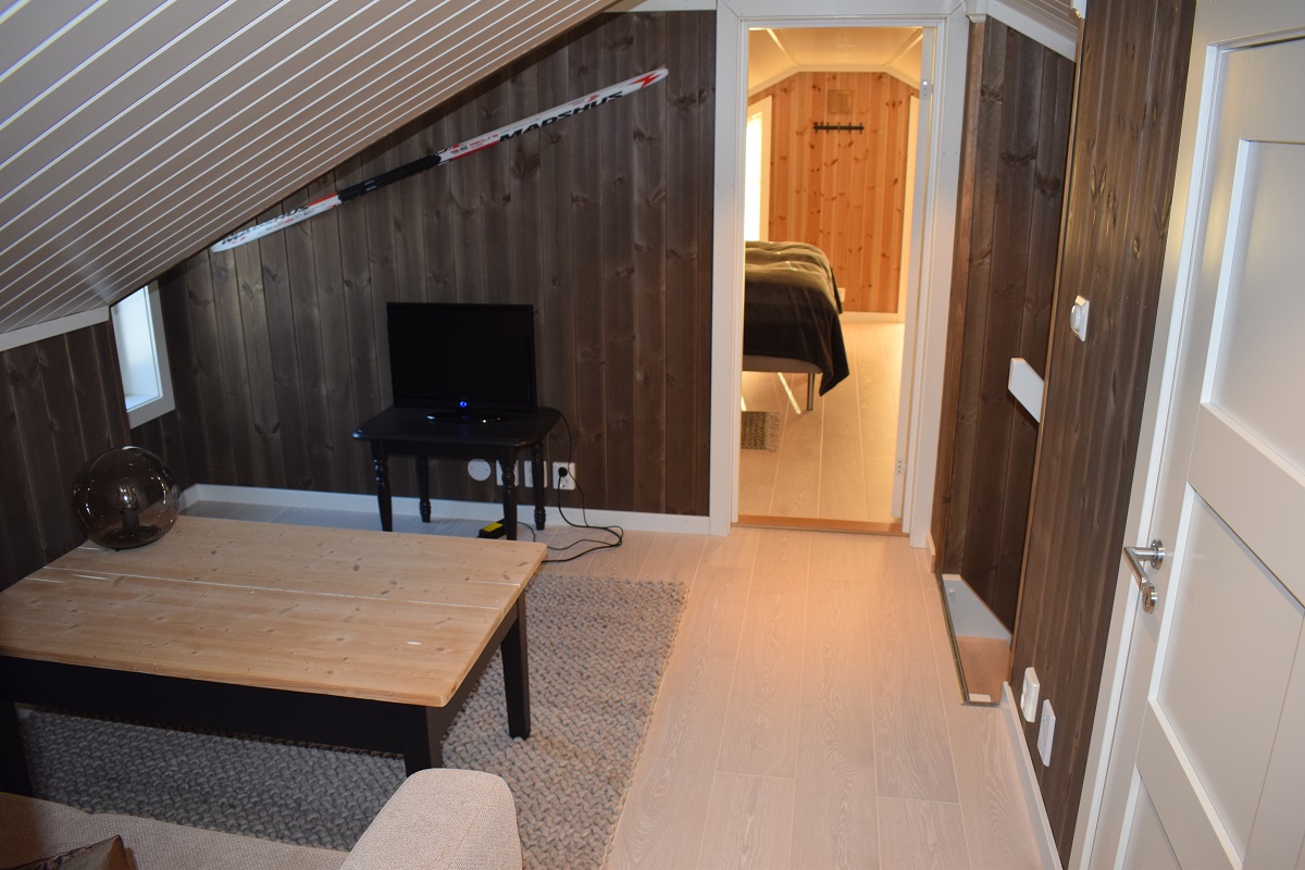 Hytte med 2 etasjer. Stor stue inneholder: Sofa, peis, Smart-TV, internett. Stort spisebord med plass til 15 personer. Ekstra TV-stue i første etasje, samt en mindre stue oppe i andre etase. Stor solvendt terrasse med fin oversikt over løyper og bakker som ligger rett utenfor hyttedøren.