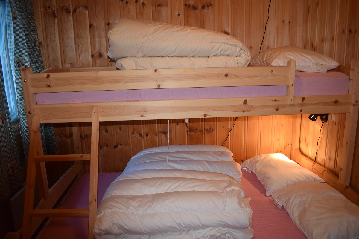 Soverom 1: 1 dobbeltseng. Soverom 2: 1 familiekøye (nedre køye 120cm bred og øvre køye 90cm bred). Soverom 3: 1 køyeseng.