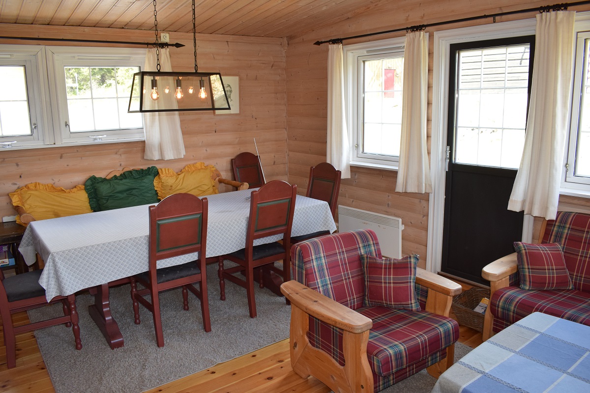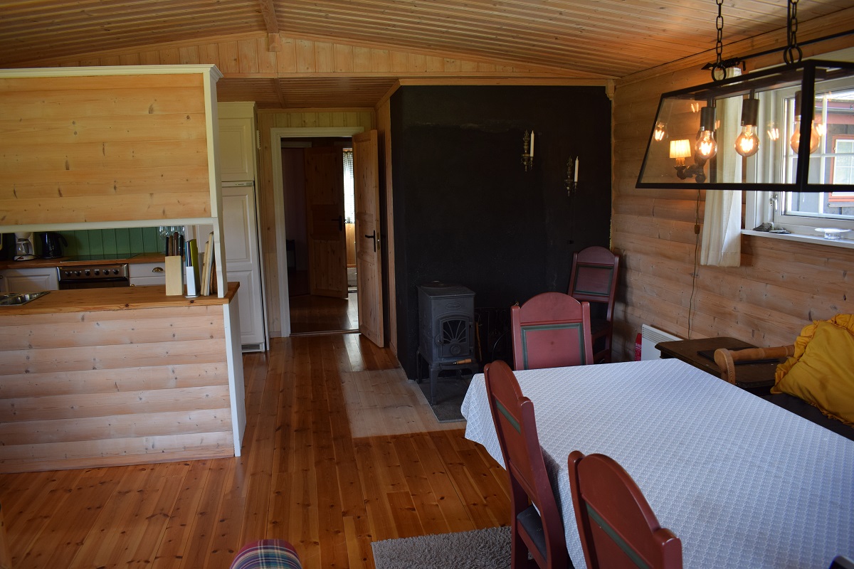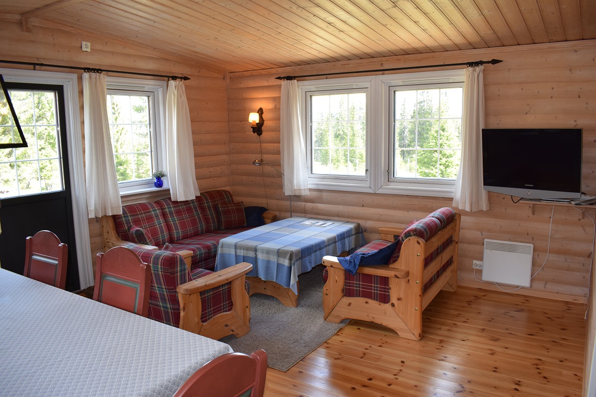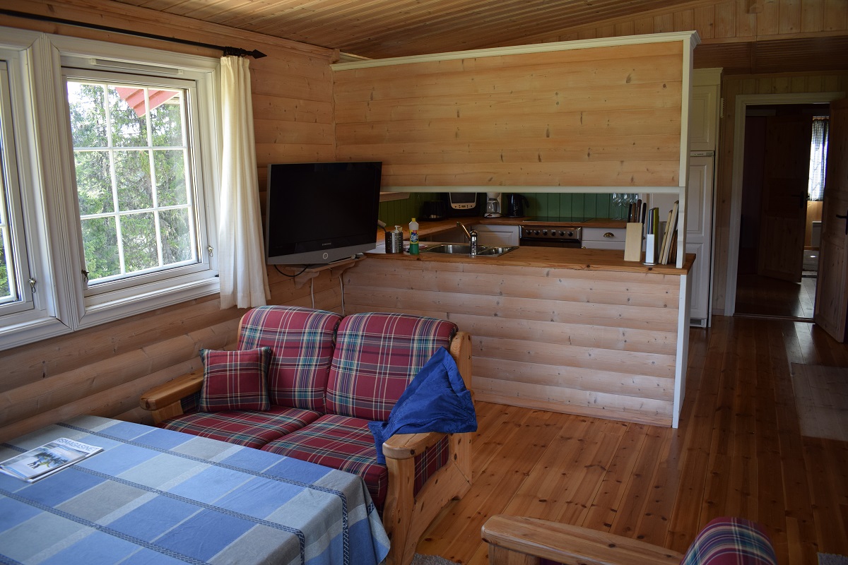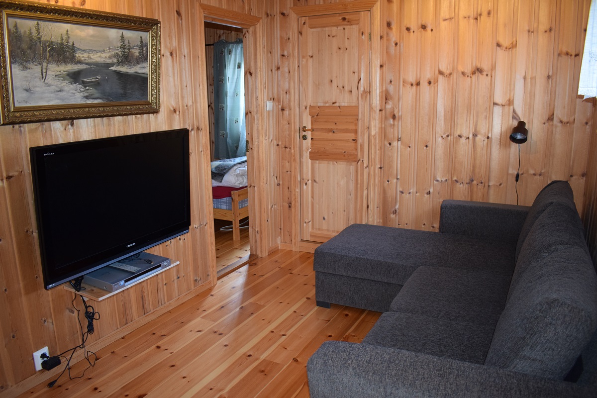 Stue inneholder sofa, TV, vedovn og spisebordet. Balkongdør. Elektrisk oppvarming. En ekstra liten stue med DVD-spiller.