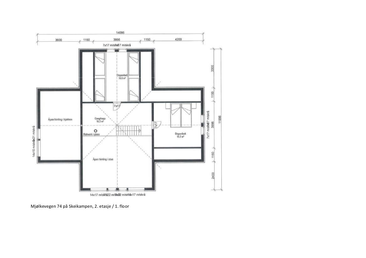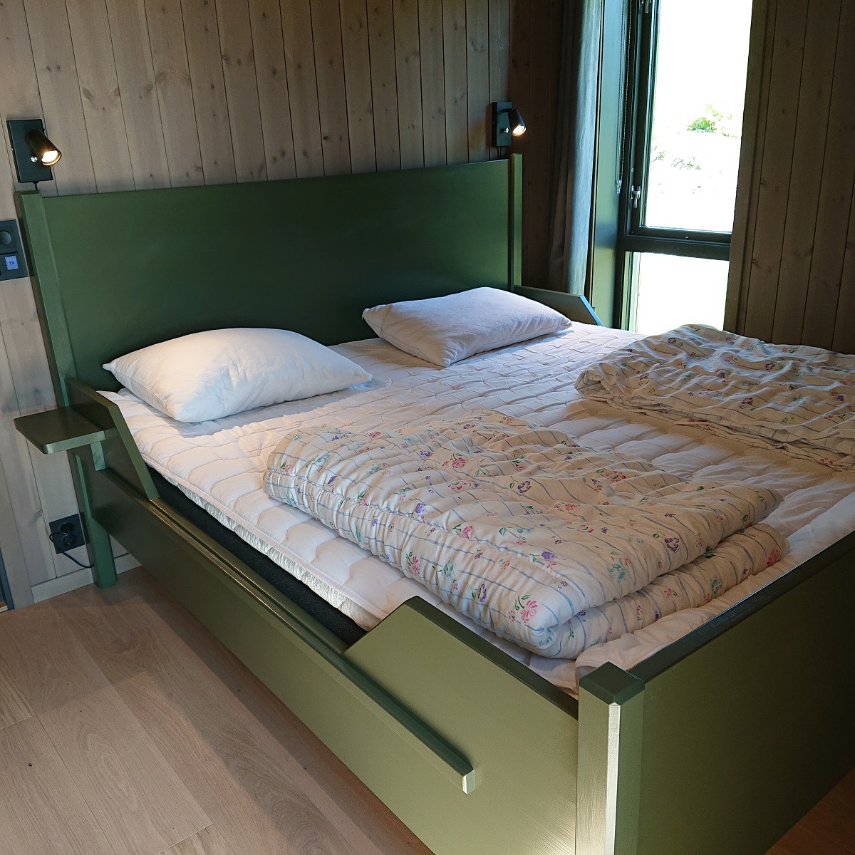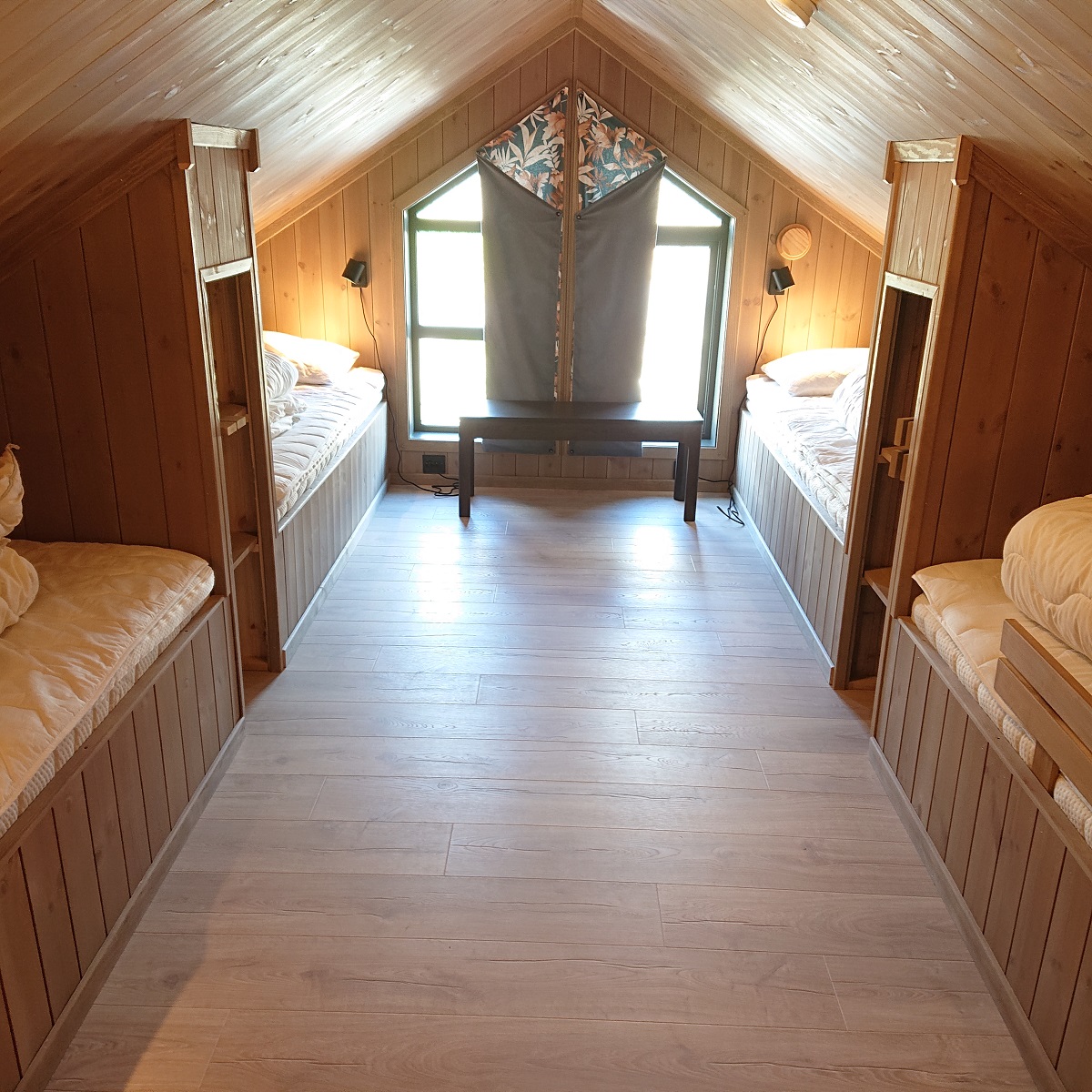 1. etasje: soverom 1: 1 dobbeltseng. Soverom 2: 1 familiekøyeseng (150cm bred underkøye, 75cm bred overkøye).