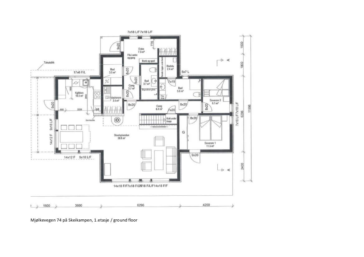 Bad 1: Dusj, toalett og badstue. Bad 2: Dusj og toalett. Vaskemaskin og tørketrommel i teknisk rom.
