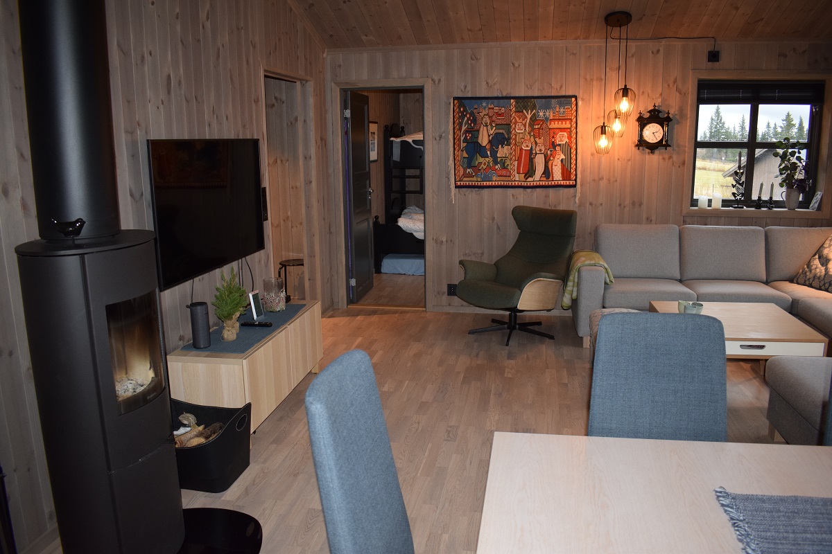 6(8)-sengs frittliggende hytte. Privateid hytte fra 2019 på 87 kvm. Beliggende i nytt hyttefelt ved Bokstadsetra. Kun 40m til langrenn og turstier. 900m til alpinsentret og skiutleie/sykkelutleie. 2,3km til matbutikk og 2,4km til golfbanen.