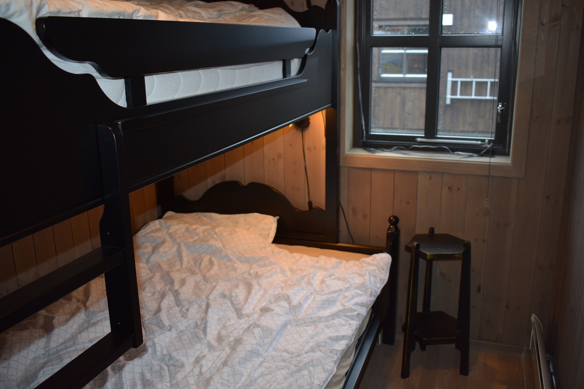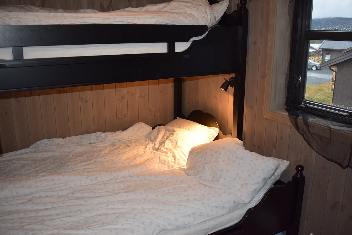 Soverom 1: dobbeltseng. Soverom 2: familiekøye med 150cm bred underkøye og 90cm bred overkøye. Soverom 3: familiekøye med 120cm bred underkøye og 90cm bred overkøye
