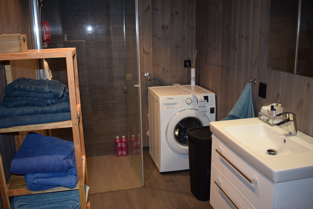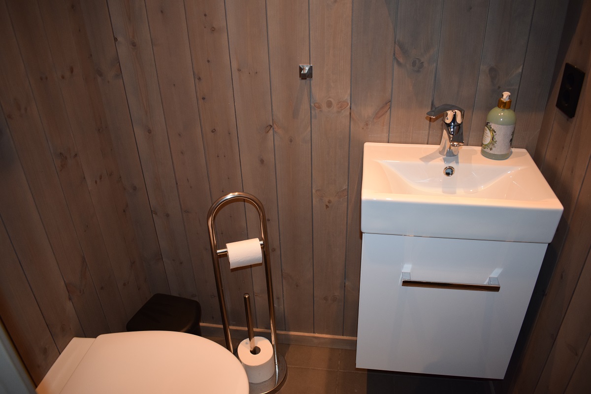 Bad 1: Dusj, toalett, vask, kombinert vaskemaskin/tørketrommel.