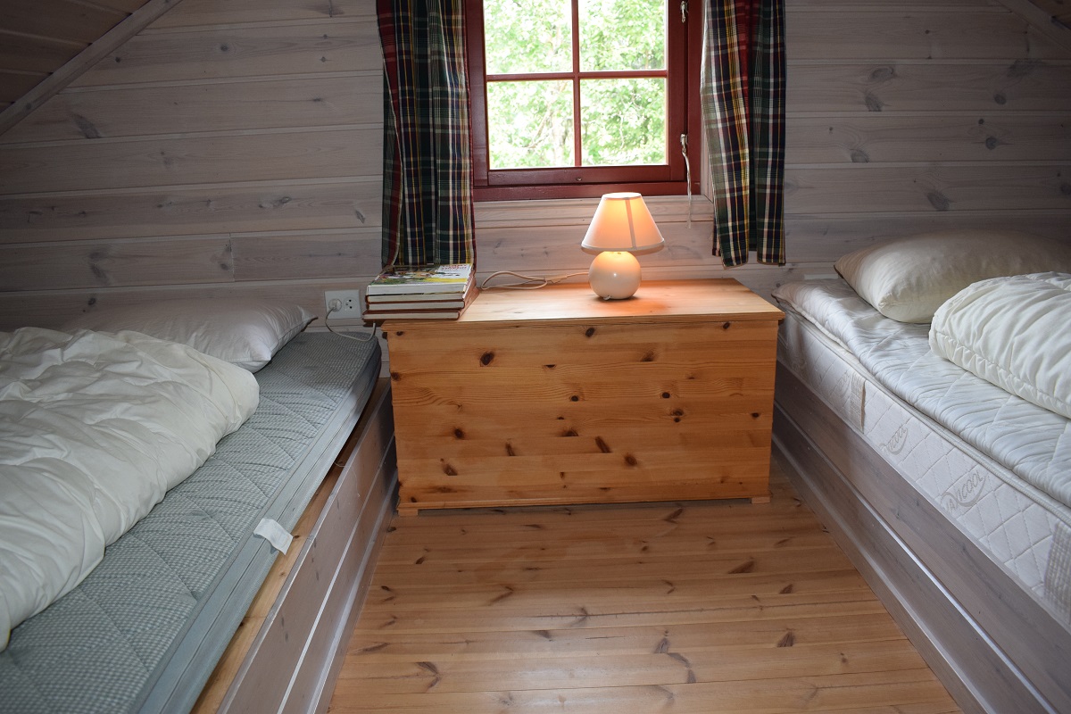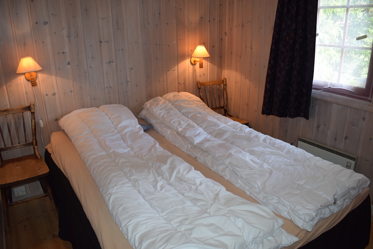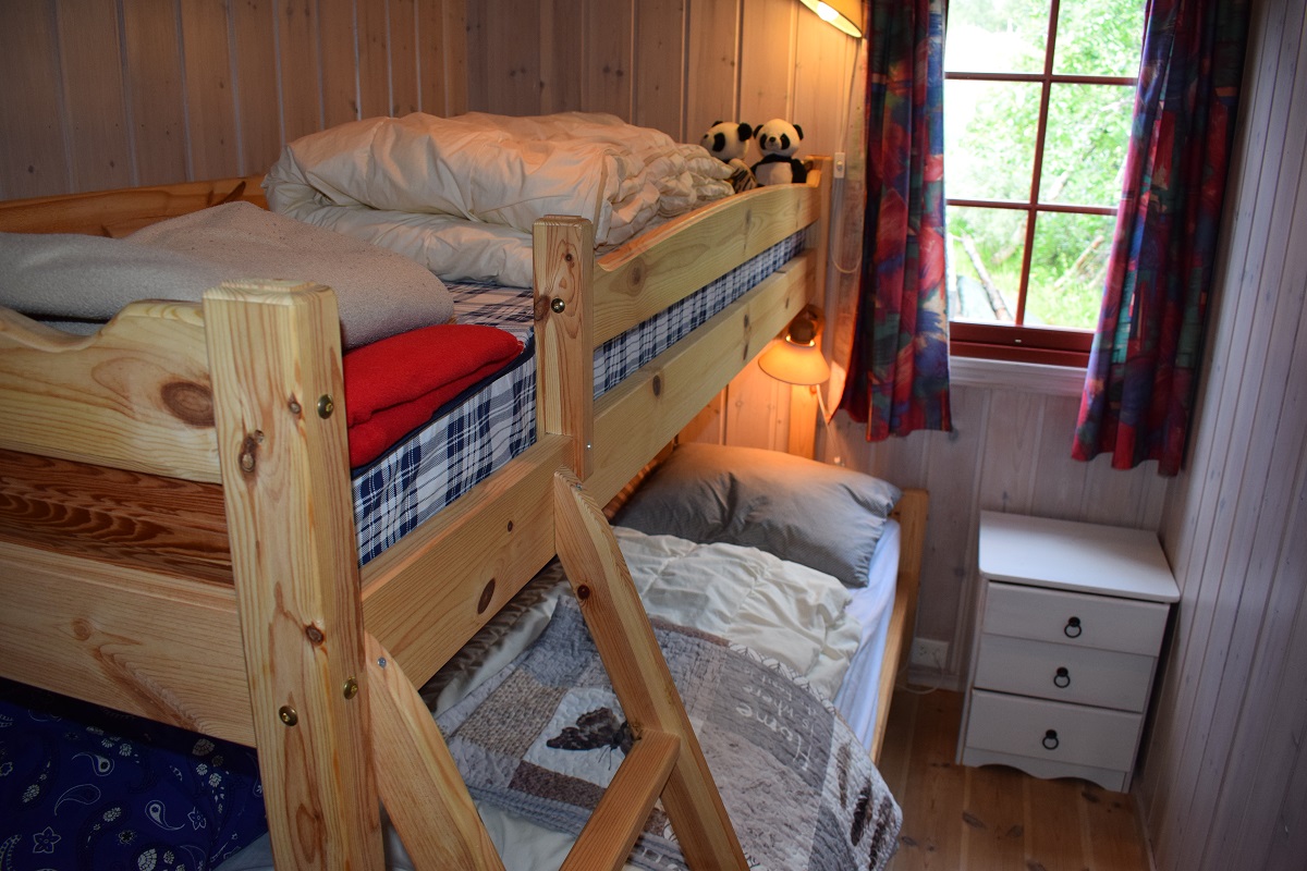 Soverom 1: 1 dobbeltseng. Soverom 2: 1 køyeseng (120cm bred underkøye, ekel overkøye). Hems med 2 enkelsenger.