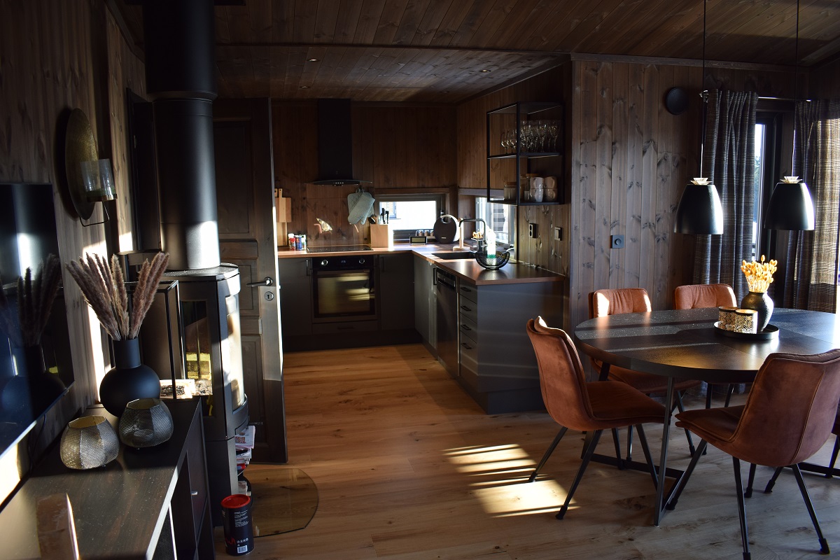 6(8)-sengs frittliggende hytte. Privateid hytte fra 2021 på 67 kvm. Beliggende i nytt hyttefelt ved Slåsetra. Kun 100m til langrenn og turstier. 4,4km til alpinsentret og skiutleie/sykkelutleie. 3km til matbutikk og 4km til golfbanen.