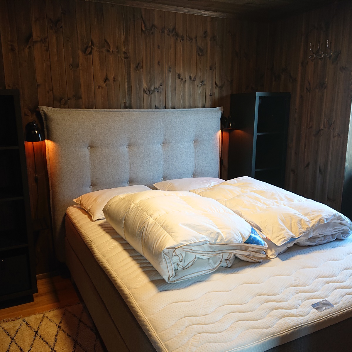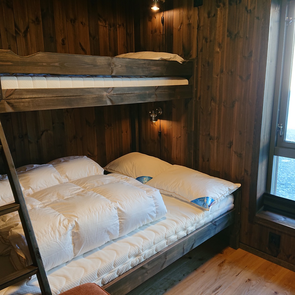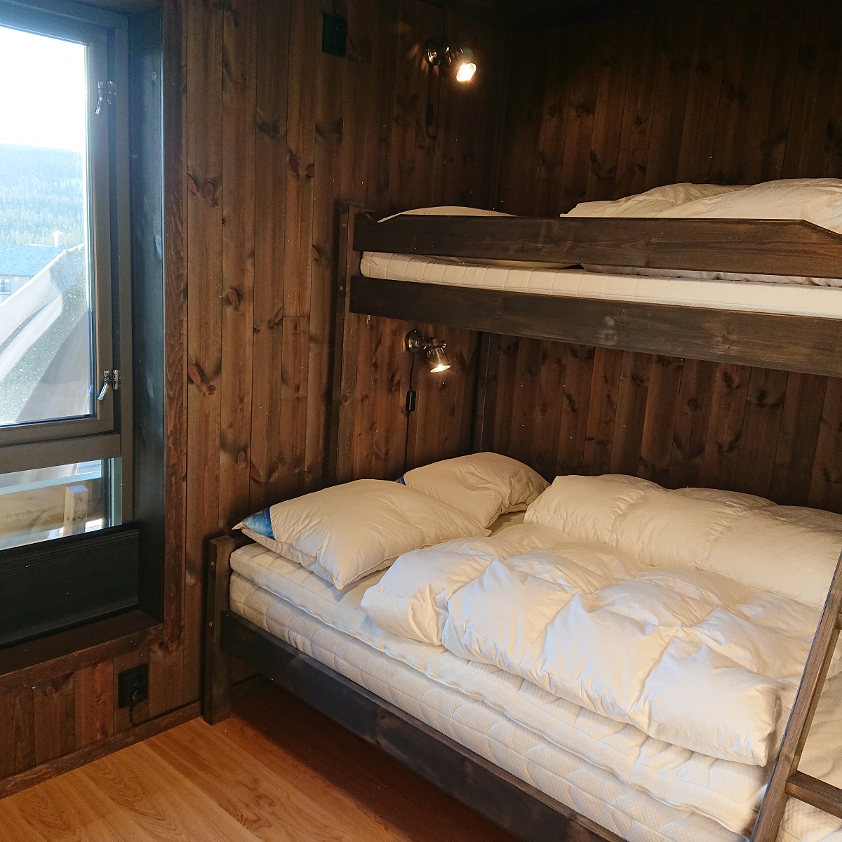 Soverom 1: dobbeltseng. Soverom 2: familiekøye med 120cm bred underkøye og 75cm bred overkøye. Soverom 3: familiekøye med 120cm bred underkøye og 75cm bred overkøye
