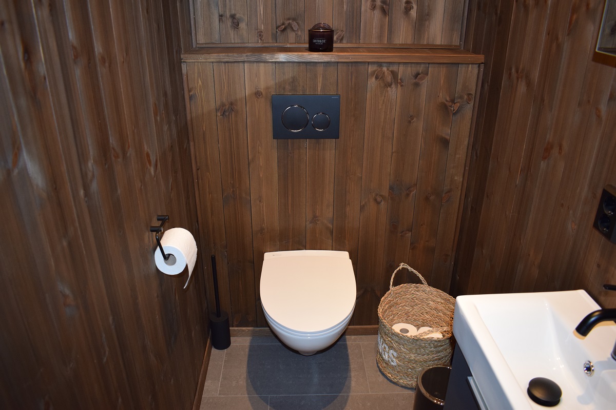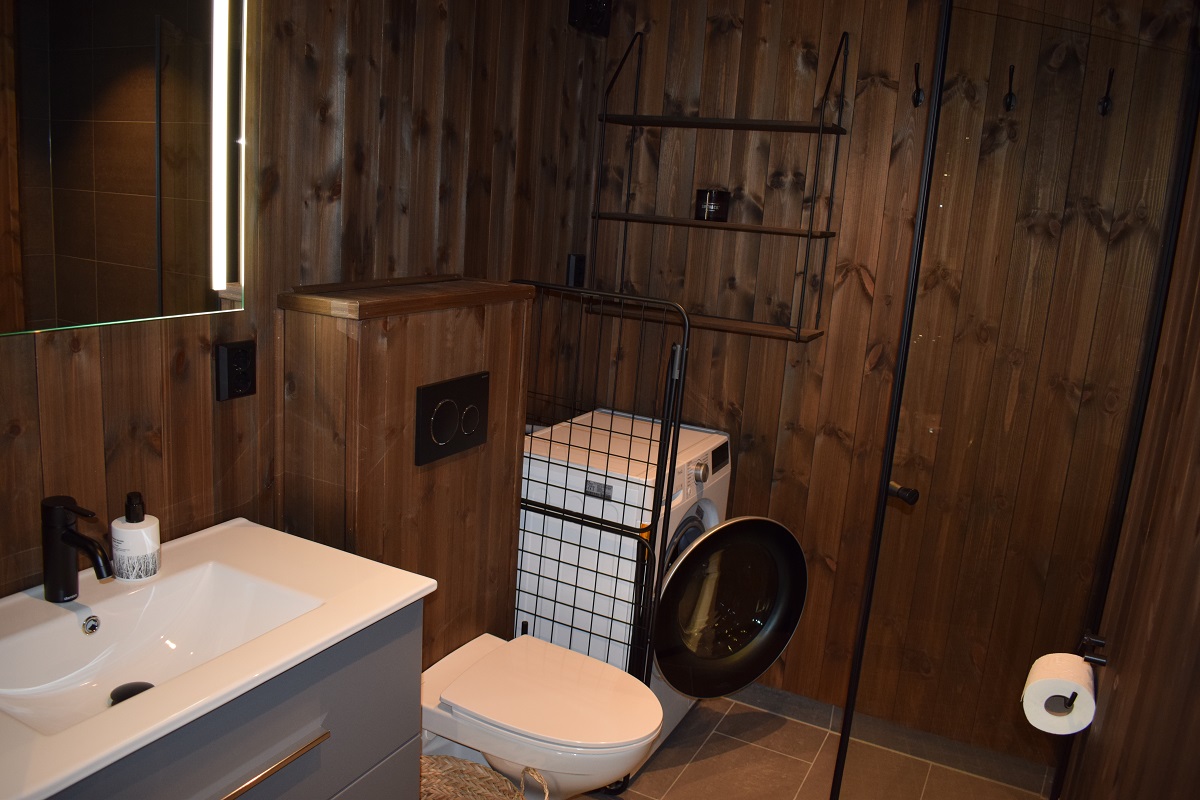 Bad 1: Dusj, toalett, vask, kombinert vaskemaskin/tørketrommel.