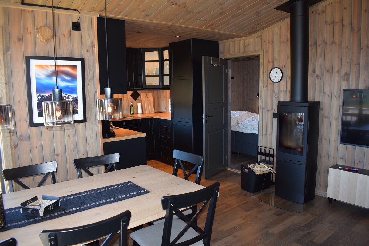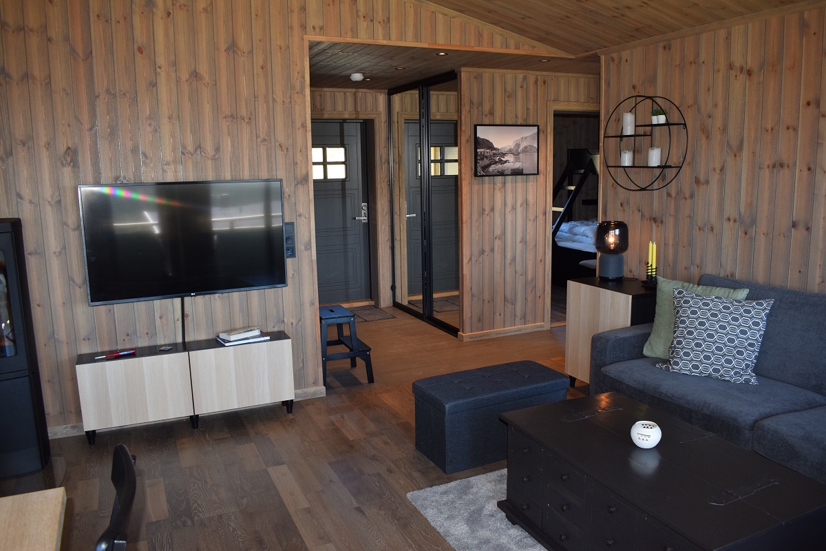 Bad 2: toalett og vask.Lys og praktisk innrettet hytte. Stue inneholder sofa, vedovn, Smart-TV, internett. Spisebord med plass til 8 personer. Sydvendt veranda med sol hele dagen.