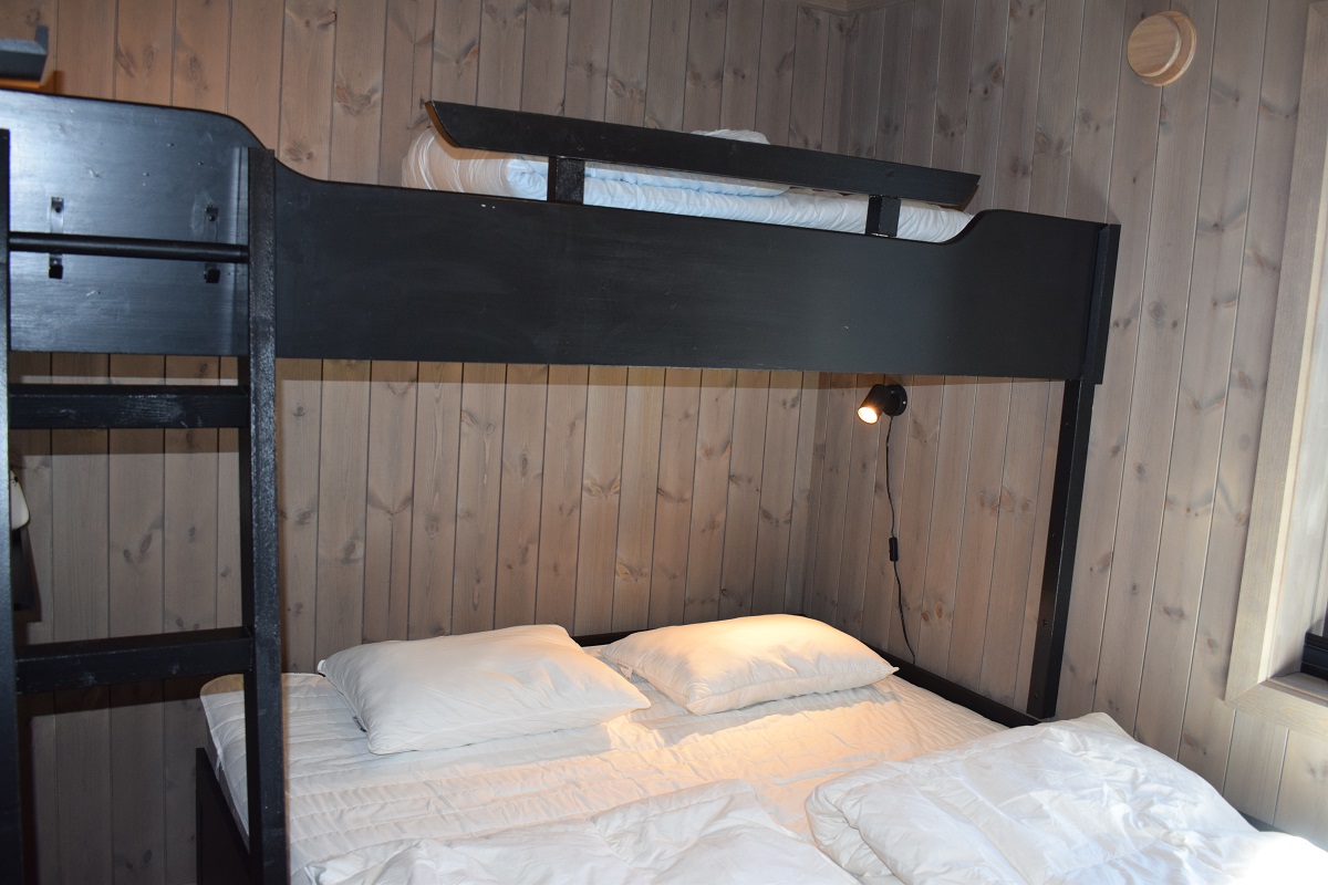 Soverom 1: dobbeltseng (150cm bred). Soverom 2: familiekøye med 150cm bred underkøye og 90cm bred overkøye. Soverom 3: familiekøye med 160cm bred underkøye og 90cm bred overkøye