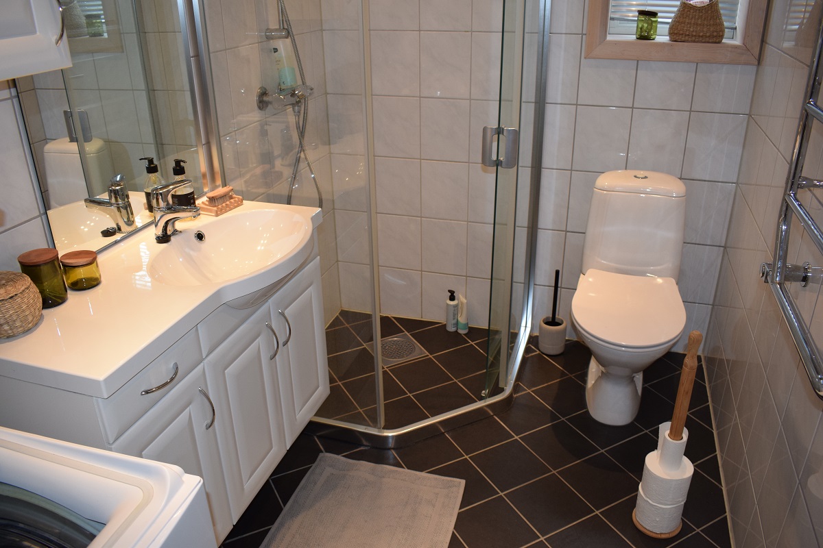 Bad 1: Dusj og toalett. Vaskemaskin.