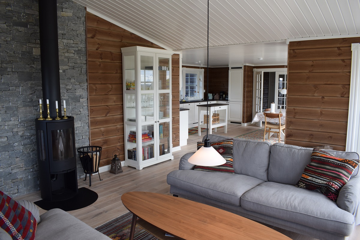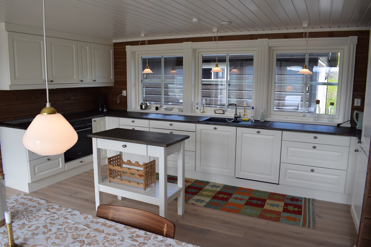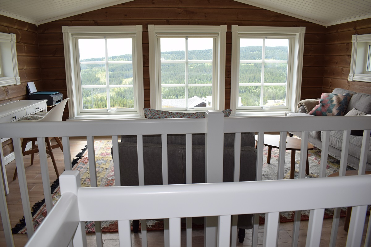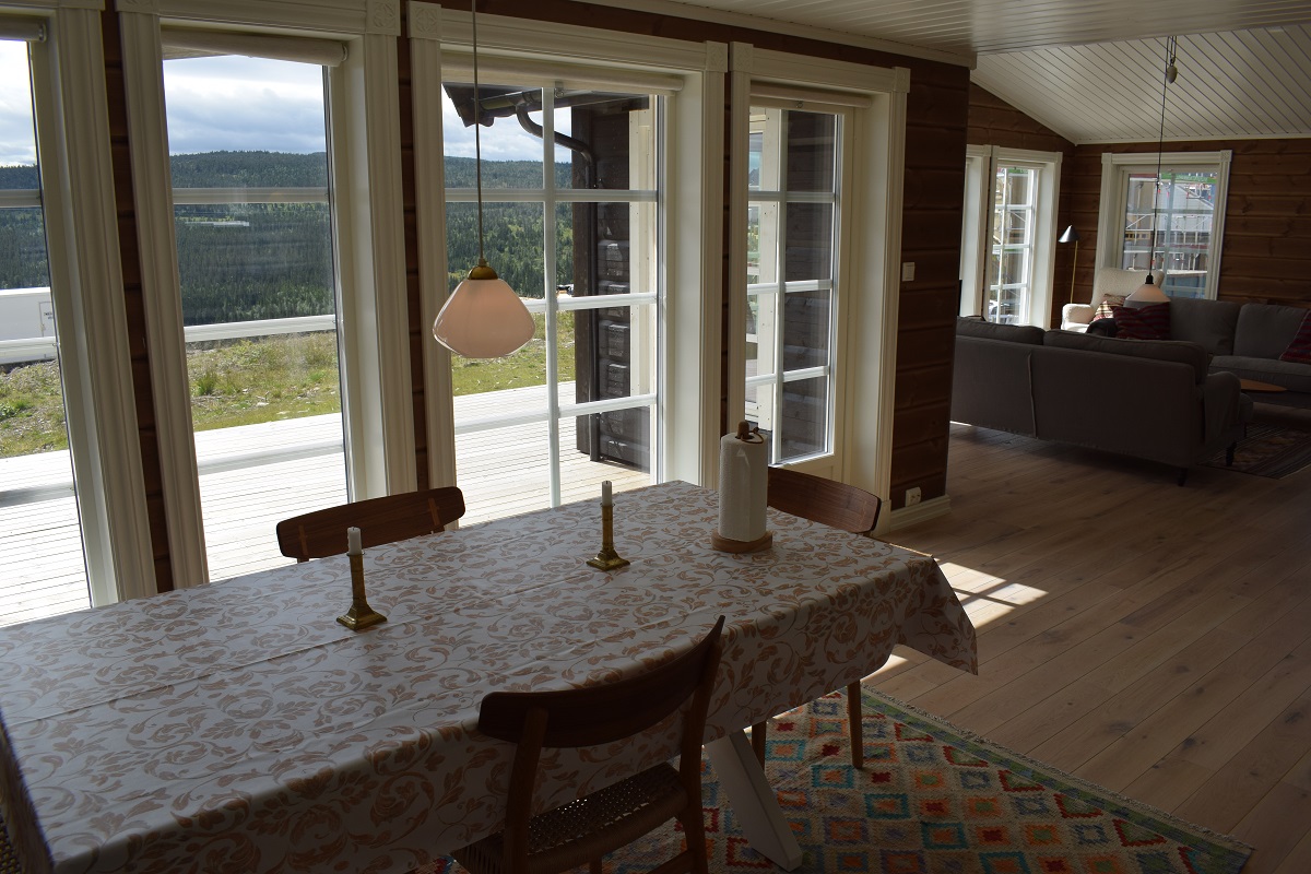 Bad 3 (i andre etasje): toalett og vask.Lys og praktisk innrettet hytte over to etasjer, fra 2022. Stue inneholder sofa, vedovn, Smart-TV, internett. Spisebord med plass til 10 personer. Egen liten stue i andre etasje med flott utsikt over dalen. Sydvendt veranda med sol hele dagen. Skibod og garsje for en bil er tilgjengelig.