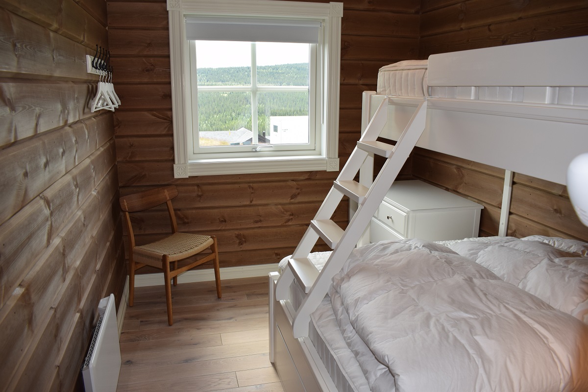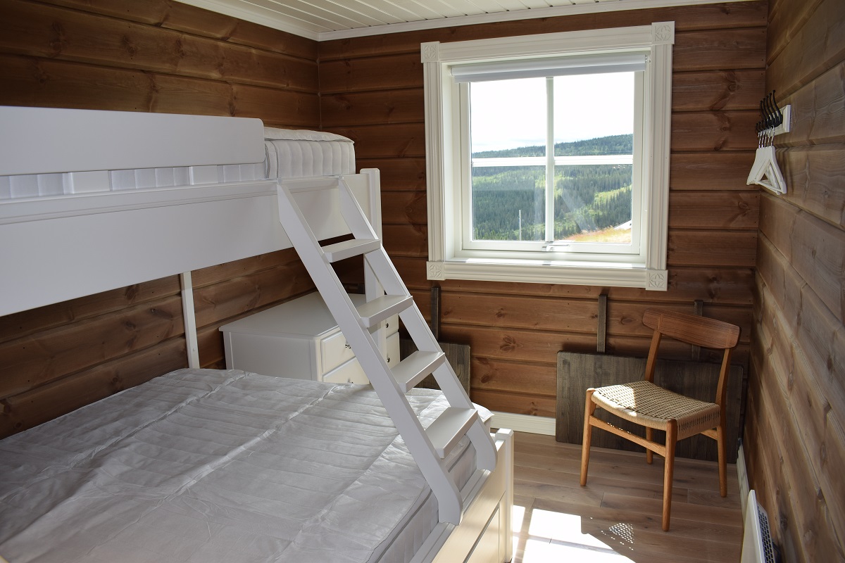 Første etasje: Soverom 1 (hovedsoverom): en dobbeltseng med tilknyttet bad. Soverom 2 og 3: hvert soverom med en familiekøye med 140cm bred underkøye og 90cm bred overkøye.
